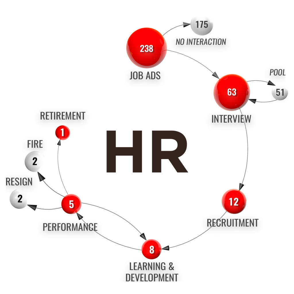 In the field of human resources management, OWCJA analyzes employees’ journey with artificial intelligence. It visualizes the process from applying an employee to job ad to retirement or leaving the job with a dynamic funnel approach. In the creation of the funnel, the stages determined by the user. It develops predictive analytics about employee lifetime value, employee satisfaction, loyalty, churn, and turnover rate for companies.